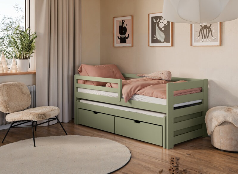 - voodi sahtlitel on kasutatud põrandale ohutuid kummirattaid