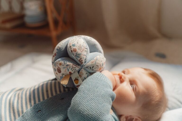 See toreda kujuga Little Dutch´i haaratav pall on teie väikesele suurepärane väljakutse. Pall on erinevate tekstuuride ja mustritega, mida uurida ja kust kinni haarata, raputades teeb häält.