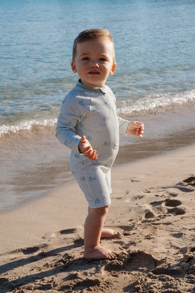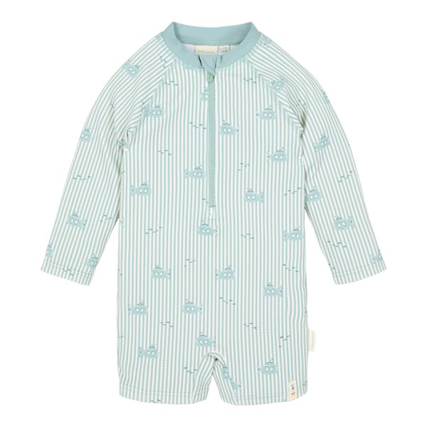 Lummav Ocean Adventure muster äratab kujutlusvõime ellu rõõmsate mereelukate ja julgete allveelaevadega. Pehme roheline taust on kaunistatud mänguliste triipude ja rõõmsate kaladega – ideaalne avastusterohketeks rannapäevadeks. Tänu pikale lukule on ujumiskostüümi lihtne selga panna ja ära võtta ka siis, kui see on märg ja liivane.
